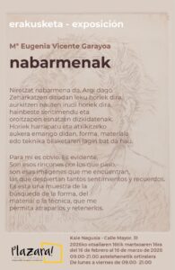 Nabarmenak, María Eugenia Vicente Garayoa, 16 febrero a 16 de marzo 24 de otsaila de 202622 de otsaila de 2026 egilea: Admin Plazara